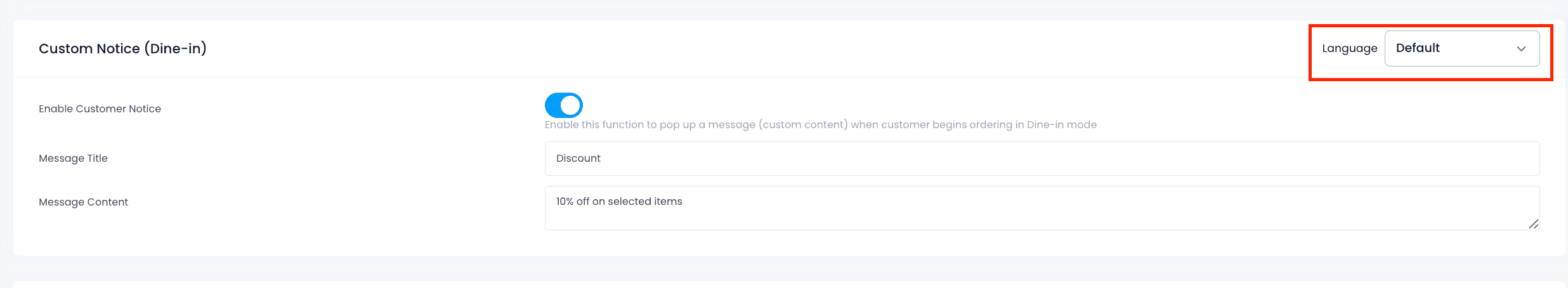 允许您在顾客开始进行内用点餐时,向其显示一则自订讯息。
